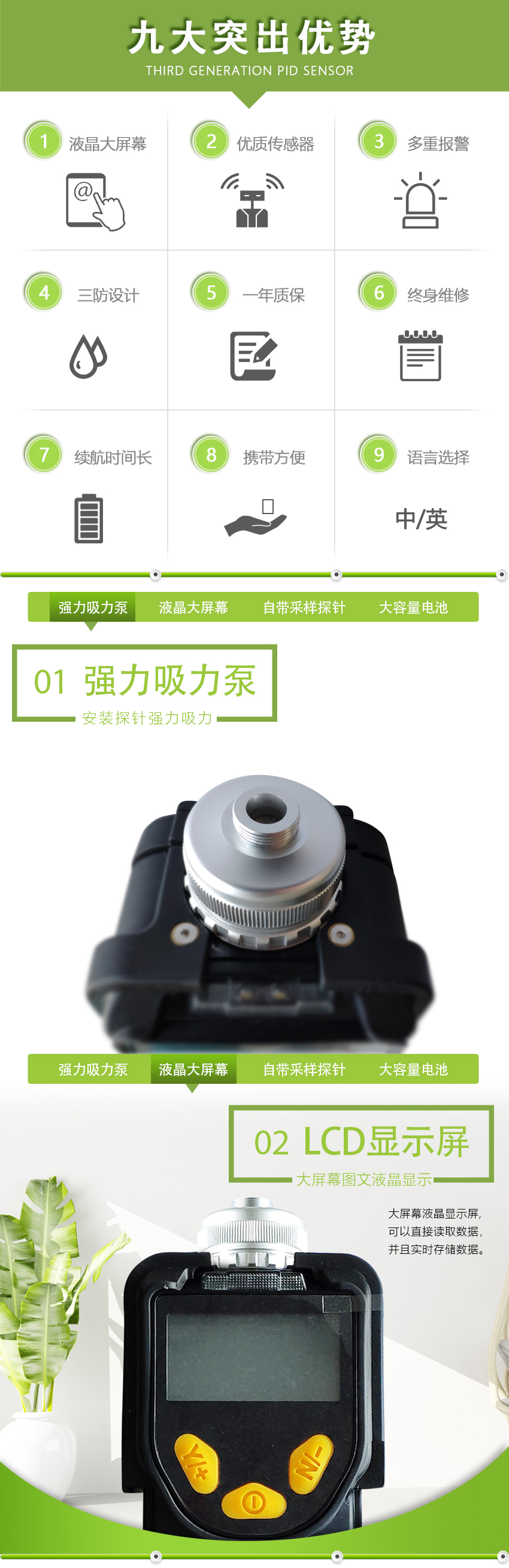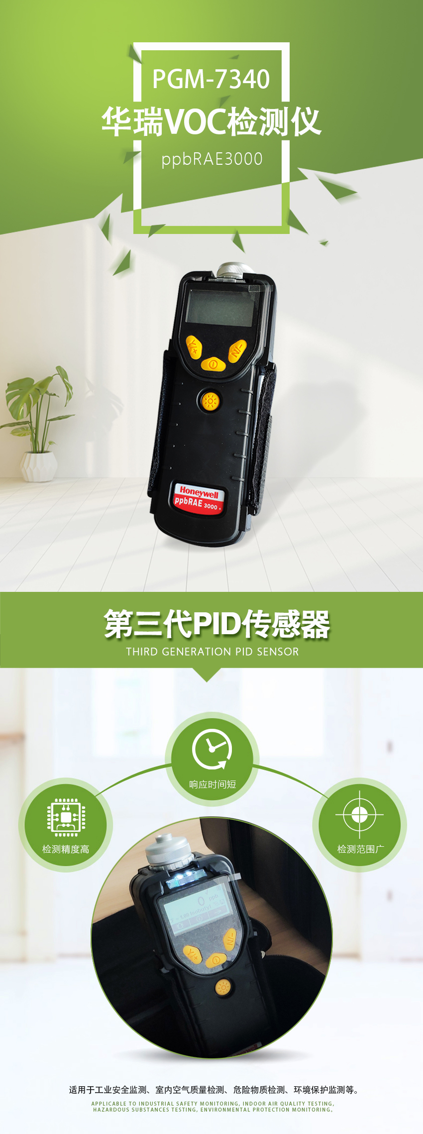 1、第三代PID傳感器,響應(yīng)時間短,檢測范圍寬