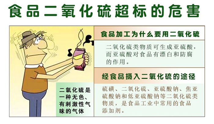 二氧化硫是國內外允許使用的一種食品添加劑,通常情況下該物質以焦亞硫酸鉀、焦亞硫酸鈉、亞硫酸鈉、亞硫酸氫鈉、低亞硫酸鈉等亞硫酸鹽的形式添加于食品中,或采用硫磺熏蒸的方式用于食品處理,發揮護色、防腐、漂白和抗氧化的作用。